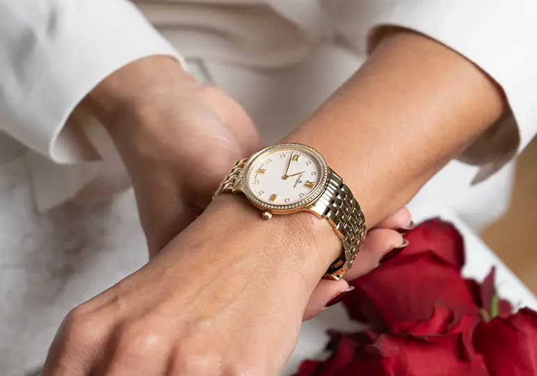 Unsere Hochzeitsuhren überzeugen durch langlebige Qualität und stilvolle Ästhetik. Gefertigt aus hochwertigem Edelstahl, bieten sie eine perfekte Kombination aus Robustheit und edler Optik. Die verwendeten Uhrwerke und Werkkomponenten sind speziell für eine lange Lebensdauer konzipiert, damit Ihr Euch über viele Jahre hinweg an Eurem Schmuckstück erfreuen könnt.