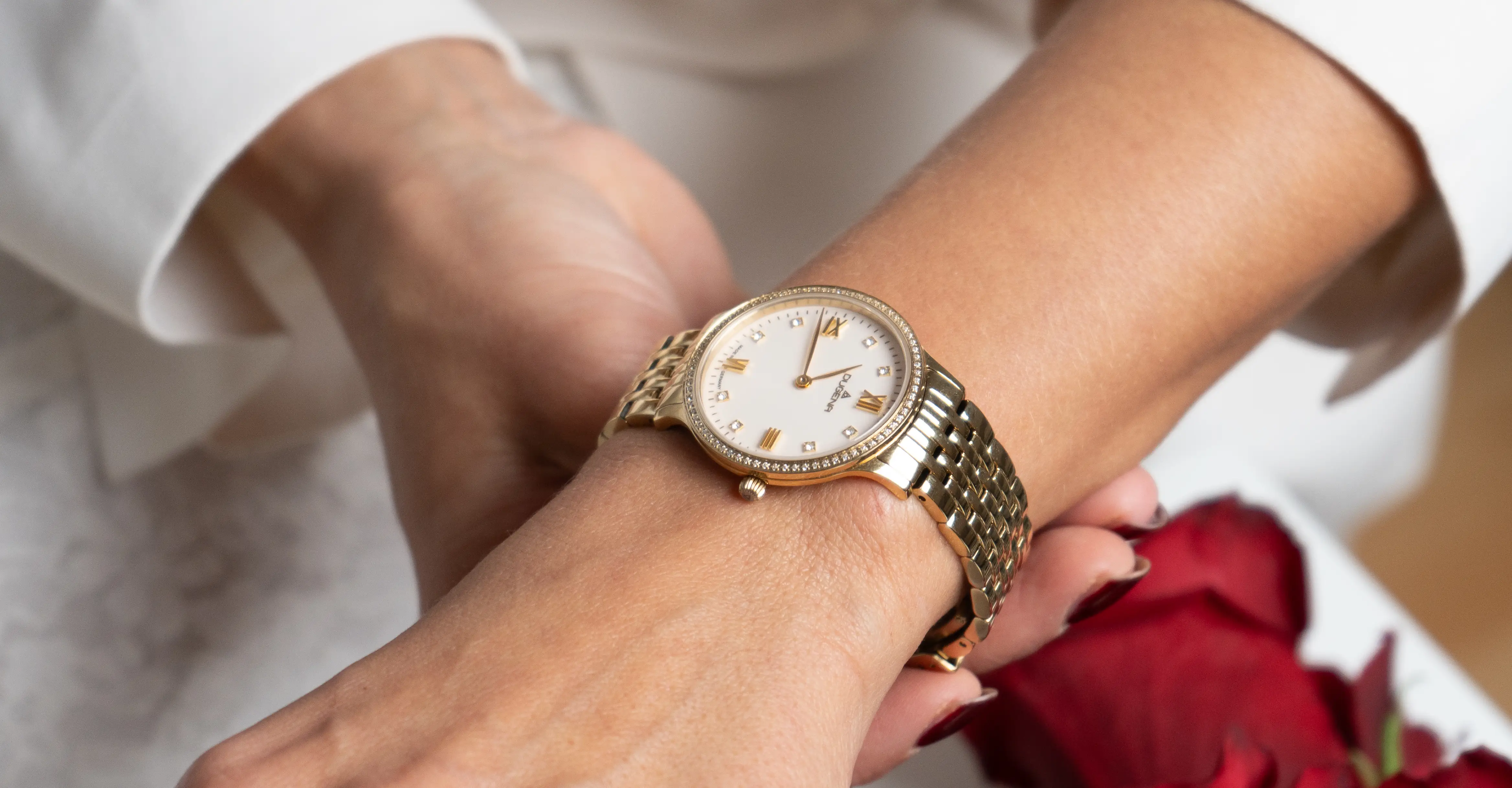 Besonders das kratzfeste Saphirglas schützt Eure Uhr vor täglichen Beanspruchungen und sorgt für einen klaren Blick auf das elegante Design – ein Begleiter, der Eure Liebe zeitlos symbolisiert.